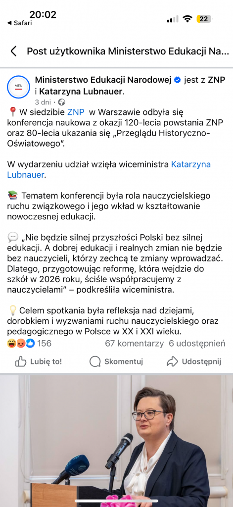 Wiceminister Katarzyna Lubnauer wzięła udział w Konferencji naukowej z okazji 120. Rocznicy powstania ZNP