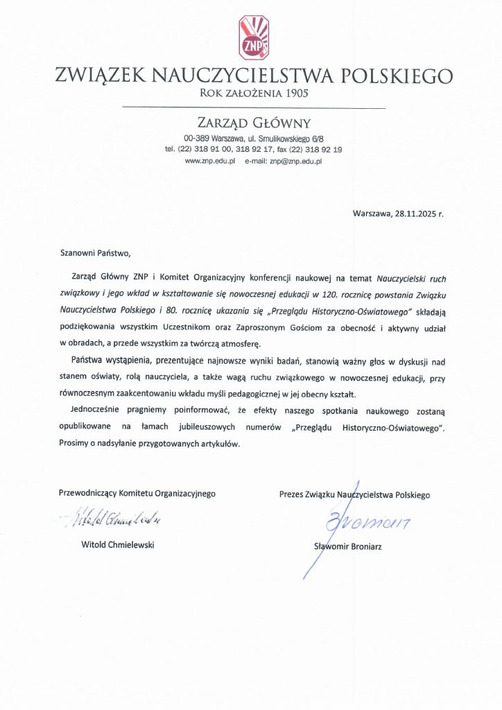 Uczestnicy Konferencji Naukowej pt. Nauczycielski ruch związkowy i jego wkład w kształtowanie się nowoczesnej edukacji w 120 rocznicę powstania Związku Nauczycielstwa Polskiego i 80 rocznicę ukazania się „Przeglądu Historyczno-Oświatowego”